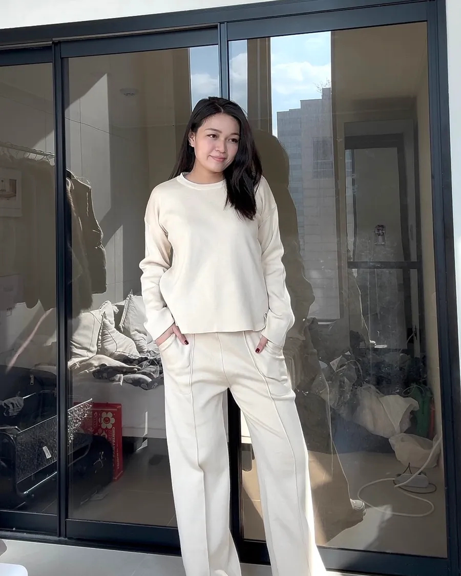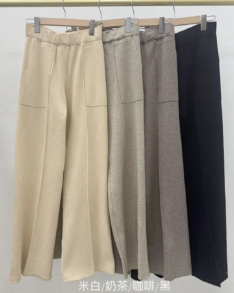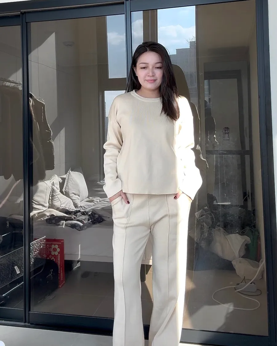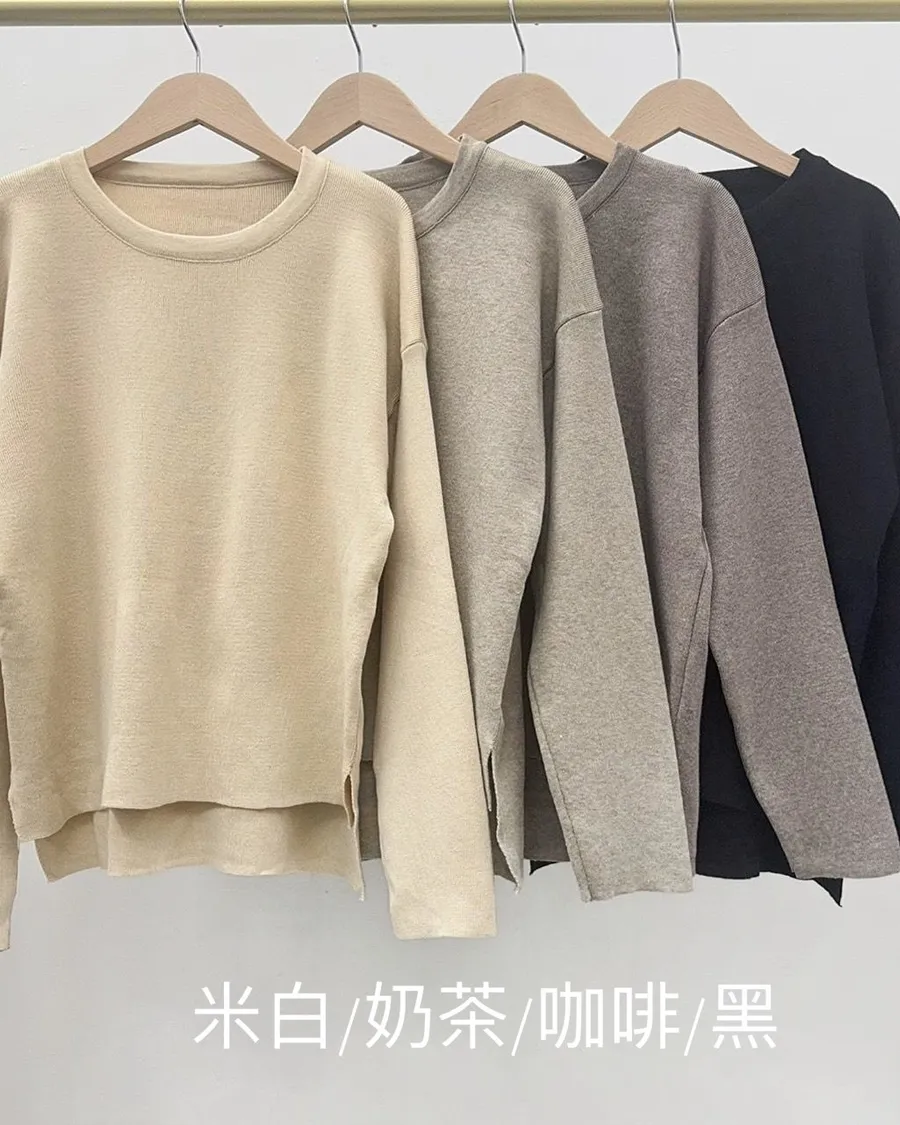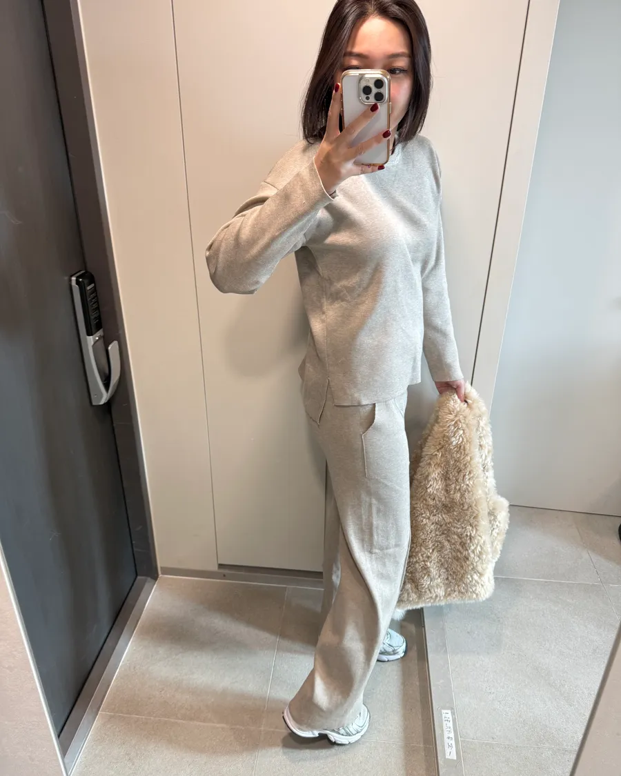 側開衩圓領針織套裝