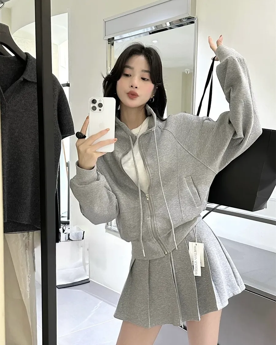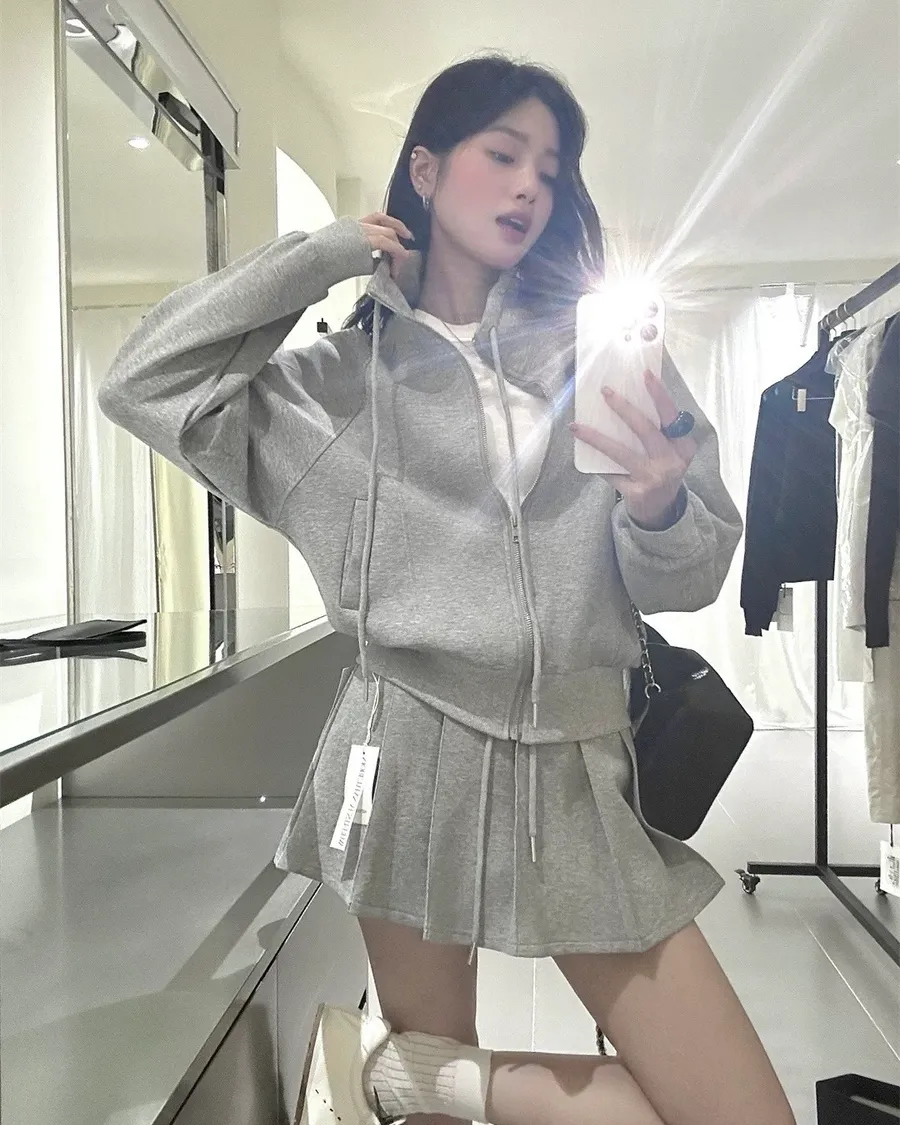韓系休閒百褶褲裙套裝